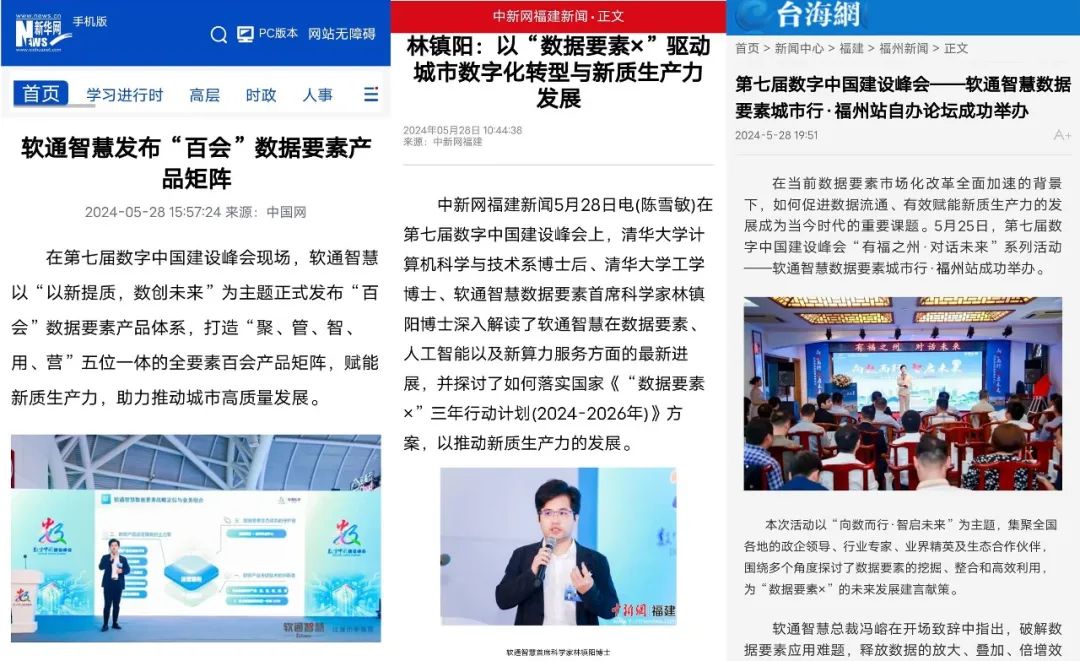 峰会期间,软通智慧在数据要素×、人工智能+、新算力服务领域推出的最新产品、解决方案及应用成果受到媒体的广泛关注。包括新华网、中新网、央视网、东南网、海峡导报等多家媒体单位,对软通智慧基于本次参会的系列活动进行重点报道。