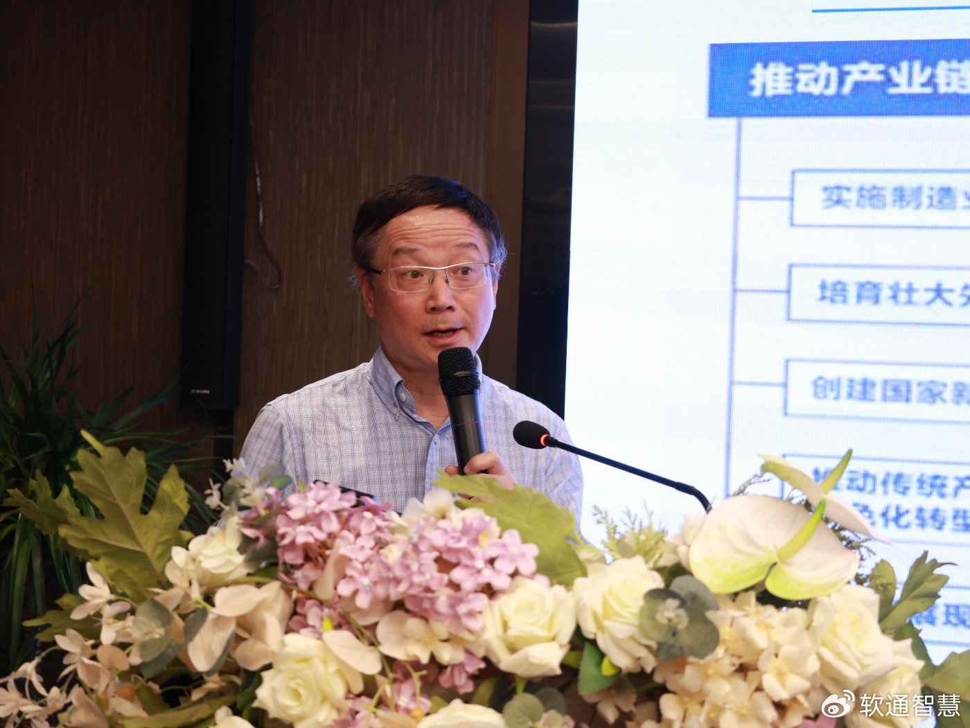 在主旨演讲环节,武汉市政协委员、荆门市政府特聘决策咨询专家、中南财经政法大学过文俊教授以《数字化转型增强企业新质生产力》为题发表主题演讲。他表示,新质生产力是以创新为主导,摆脱传统经济增长方式和生产力发展路径,具有高科技、高效能、高质量的特征的先进生产力。在大力发展新质生产力的背景下,企业通过数字化转型,整合人工智能、大模型等先进技术,能够有效地降低企业经营成本,提升企业生产效率和市场响应速度,降低企业经营风险,加快形成企业新质生产力。