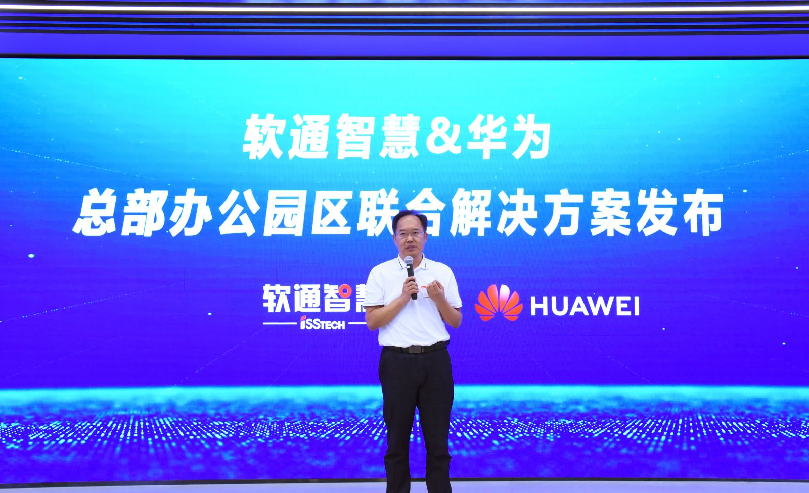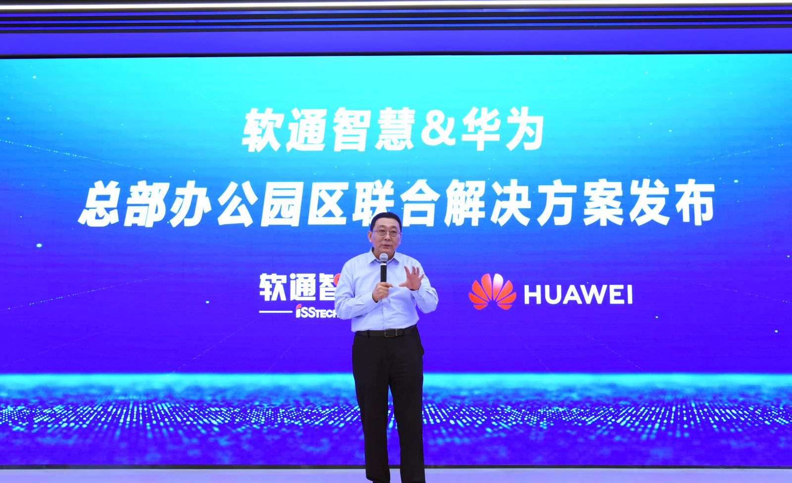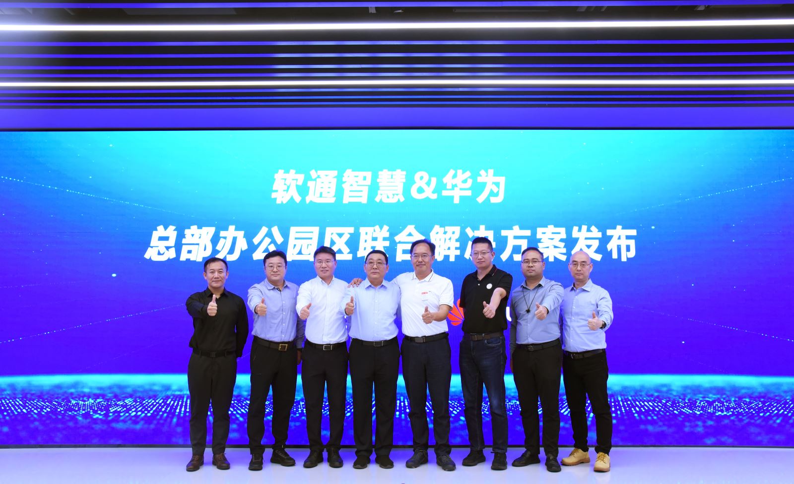 华为中国政企解决方案副总裁董伟嗣、中国政企智慧园区解决方案部部长王健康、中国政企OpenLab部长丁优,以及软通智慧高级副总裁、北方大区总裁卢俊义,华中大区执行总裁张学广,解决方案中心副总裁柳涛等领导及嘉宾共同出席了发布仪式。