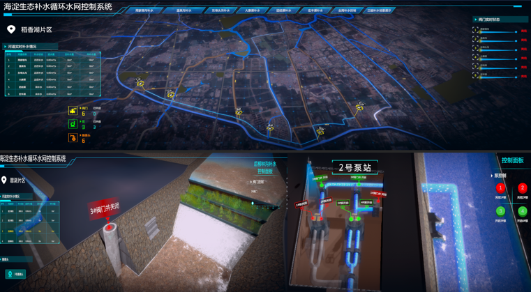 将原有粗放式手动补水模式提升为数字化智能化模式,推动智能补水系统的跨越式发展,打造智能、安全、远程可控的数字孪生生态补水循环水网控制系统。