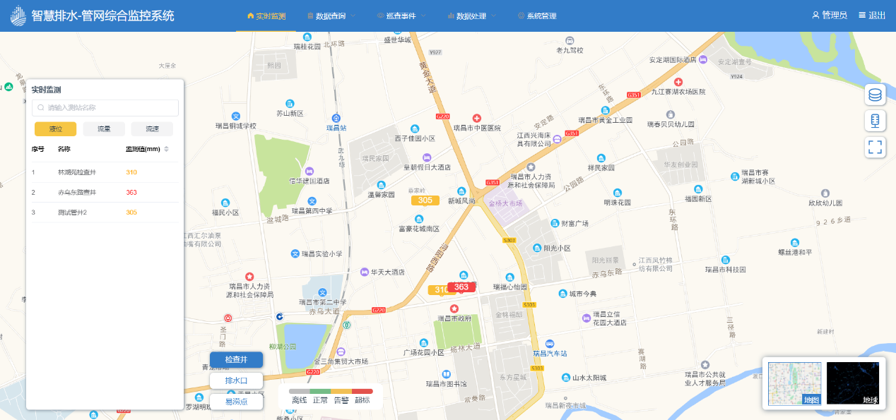 通过对重点片区管网进行缺陷检测及淤堵调查,根据国家、省、市以及城市精细化管理要求进行采集、存储、查询、管理、计算、分析整理出科学的管网数据。